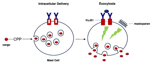 Mast cell activation is highly complex and reliant on the well-regulated communication between cells by bio-informational small molecules synthesised by one tissue and subsequently recognised by others. Every target cell has receptors that recognise a large number of pre-formed secretory chemicals, activating an appropriate response. The final stage following initial antigen-induced receptor activation is termed exocytosis and is the process by which cells move materials from within the cell into the extracellular fluid (see fig. 1).